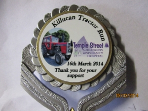 € 14,332.10 raised for Temple Street Hospital with extraordinary Killucan Tractor Run Killucan was the focus for a major fundraising event Sunday 16th of March 2014 when 130 tractors set out on a spectacular fundraising event which crossed two counties. Tractors of all shapes and sizes began gathering at 9am and were parked adjacent to the railway for the official start. The official move off saw the convoy of tractors travel down the banks of the royal canal and then onto Moran’s, Hill of down before heading out the trim road back via Raharney to Killucan again. It was recorded that the Killucan tractor run was bigger than the Mullingar Parade.